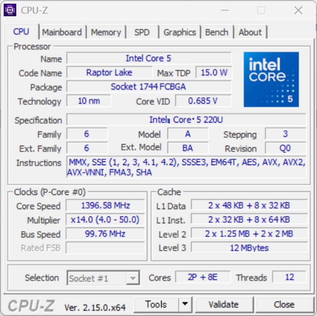 インテル® Core™ 5 プロセッサー 120U インテル® Core™ 5 プロセッサー 220U |