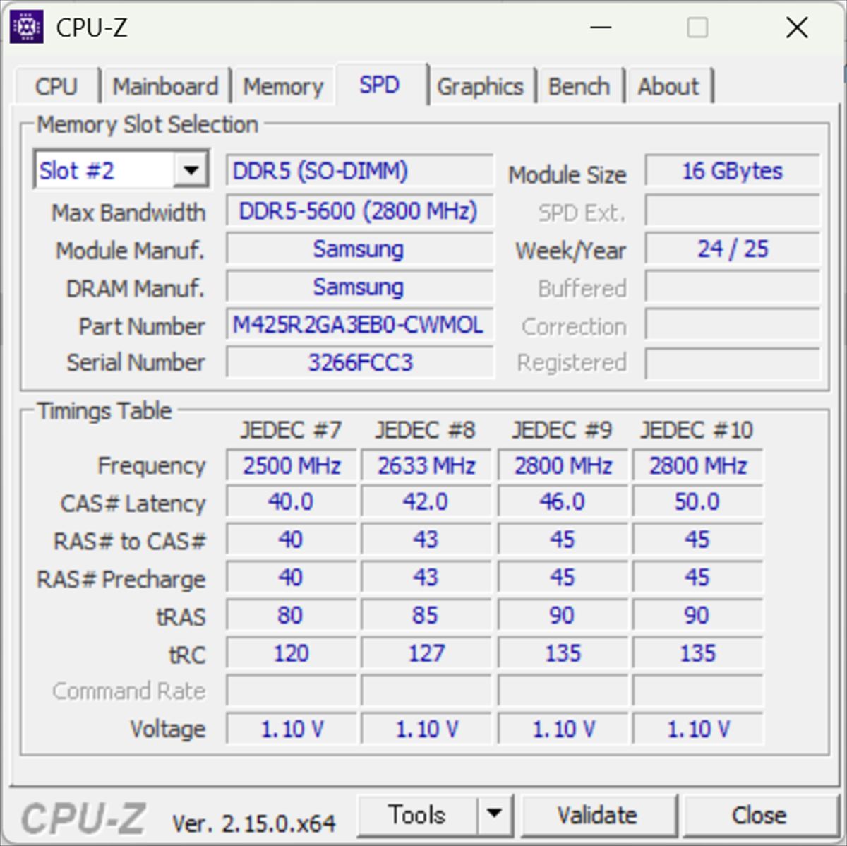 | メモリー | 16GB(16GB×1)SO-DIMM DDR5-5600、最大48GB |