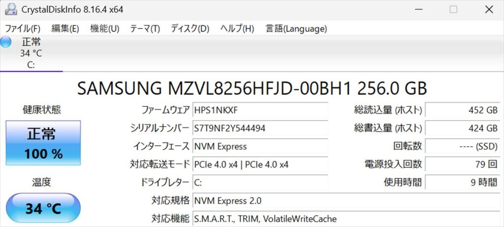 | ストレージ | 256GB M.2 SSD (PCIe NVMe) |