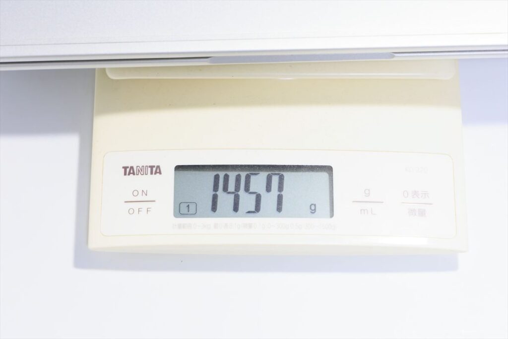 本体は約1457gでした、ホームページ上の数値は約1.398kg~なので少し重めですかね。