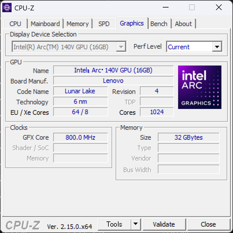 | グラフィック | 内蔵 (インテル® Arc™ 140V GPU) |