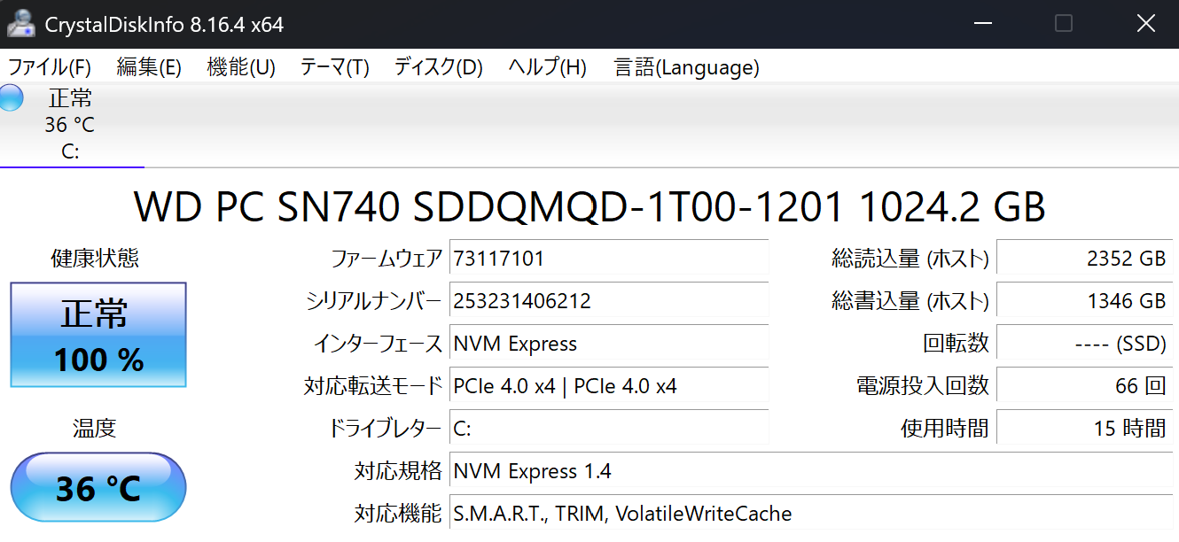 | ストレージ | 1TB SSD M.2 2242 PCIe-NVMe Gen4 TLC OPAL対応 |