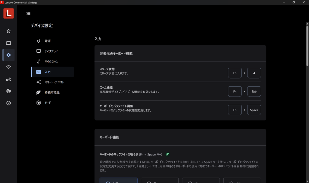 キーボードは「フルサイズ・キーボード (6列)、85キー (Fnキー、PgUpキー、PgDnキー、Windowsキー、Copilot キー)、JIS配列、触覚タッチパッド、バックライト・キーボード」となっていて違和感のない配置なので使いやすいと思います。