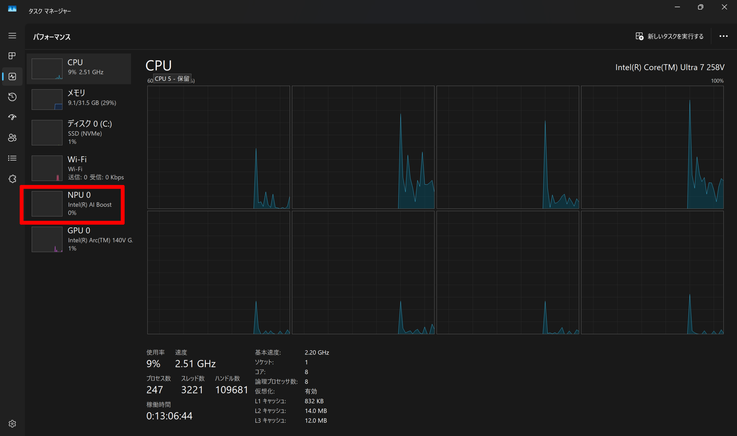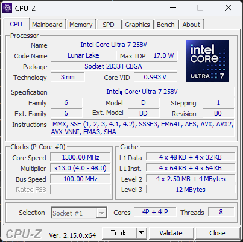 | CPU | インテル® Core™ Ultra 7 プロセッサー 258V |