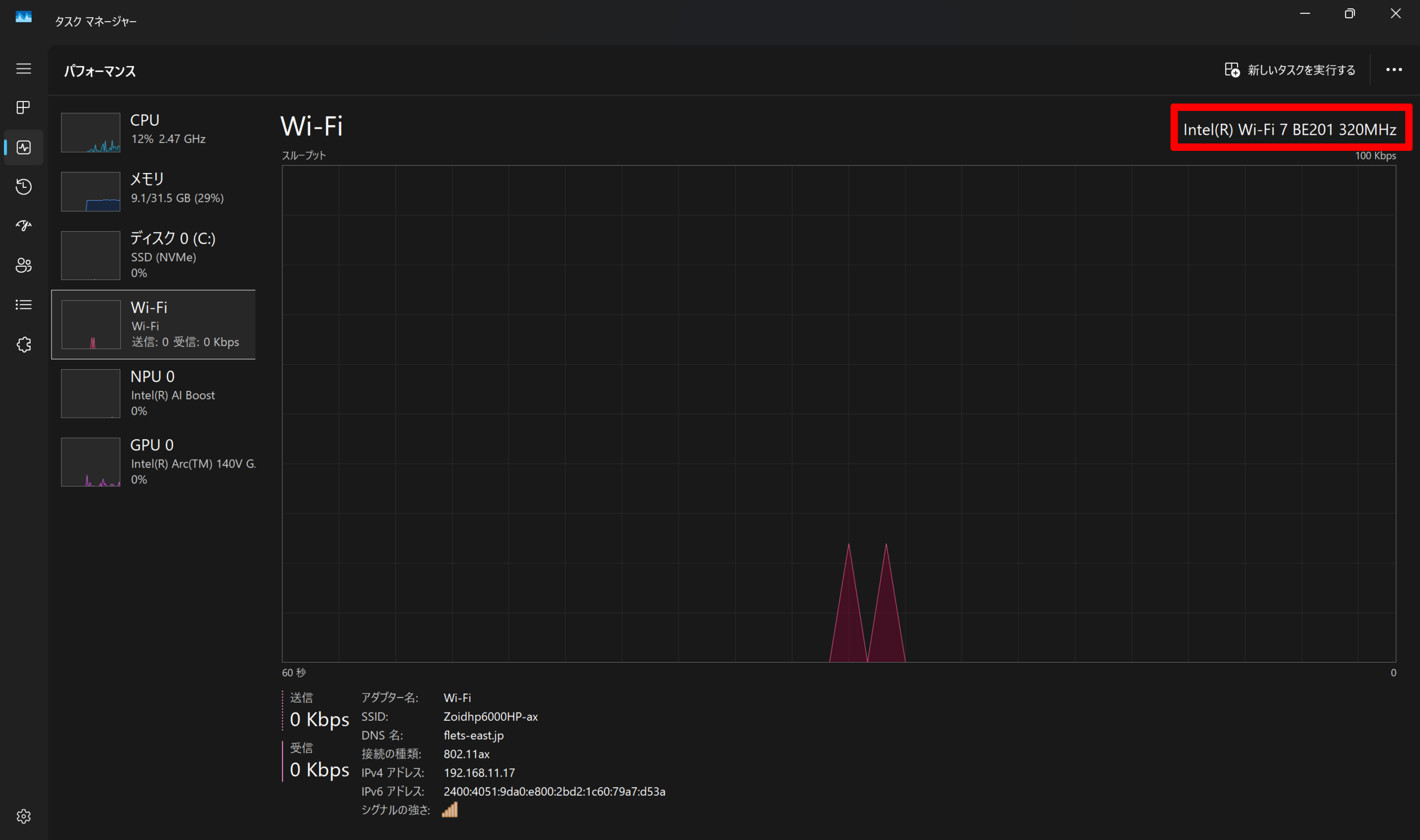 | ネットワーク | インテル® Wi-Fi 7 BE201 2×2 & Bluetooth® |
