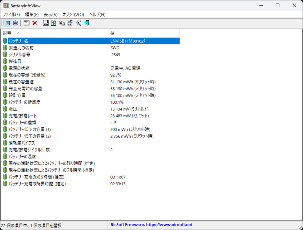 バッテリー残量、ほぼゼロの状態から充電のテストを行いました。