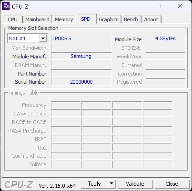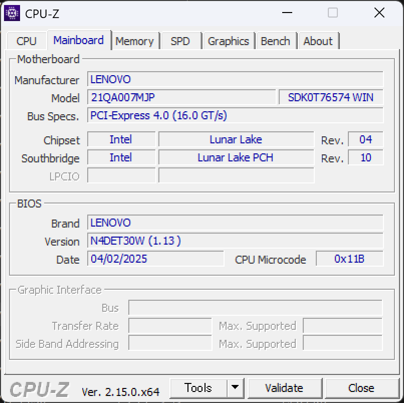メモリ:’32 GB LPDDR5X-8533MT/s (オンボード)