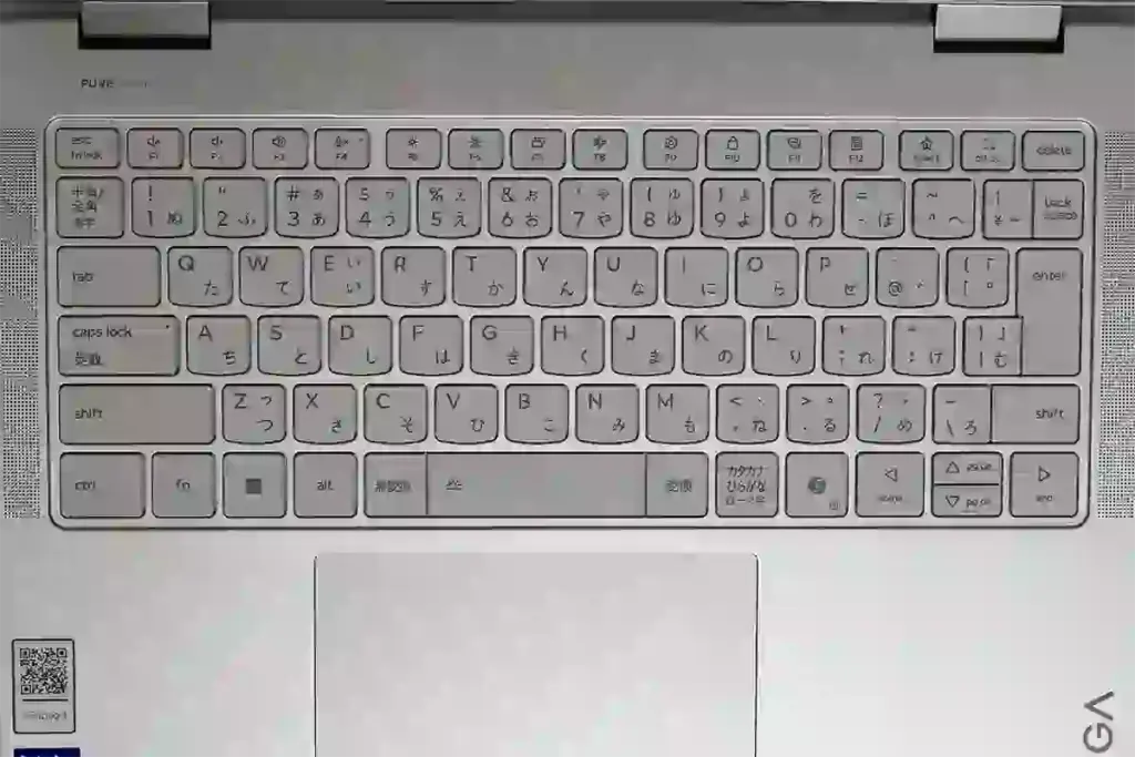 キーボードは「84キー(Fnキー+Windowsキ+Copilot キーを含む)、JIS配列、バックライト・キーボード、マルチタッチパッド、パワーボタン」となっていて違和感のない配置なので使いやすいと思います。