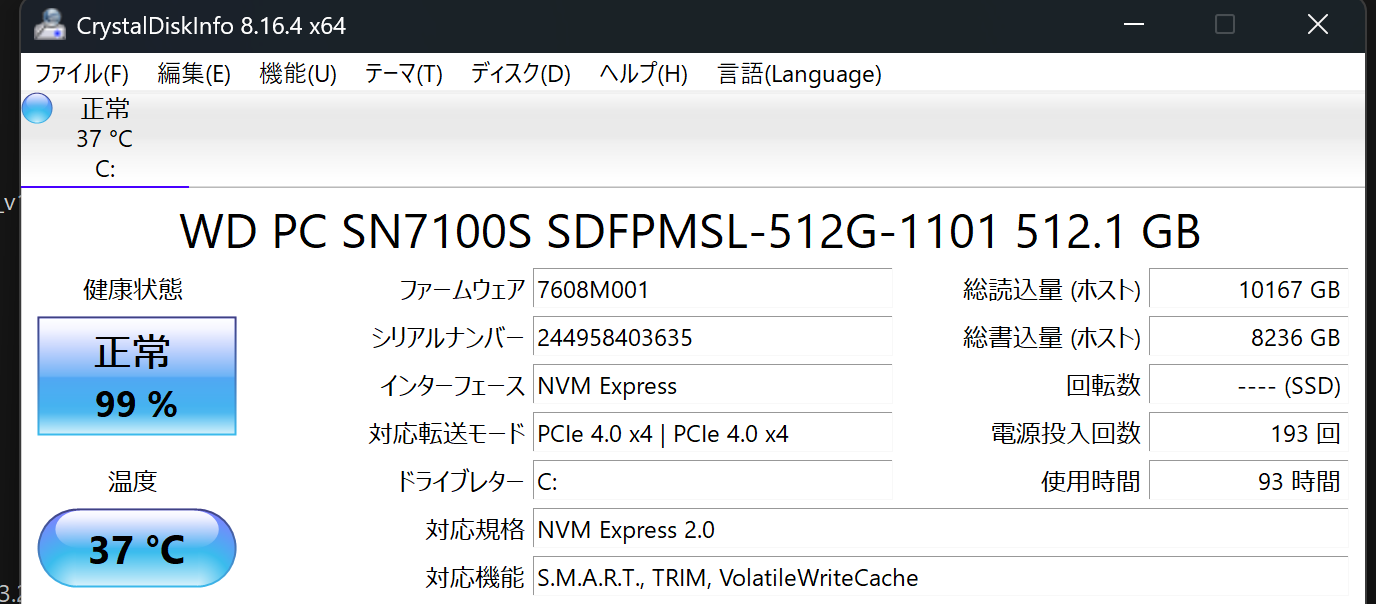 ストレージ 512GB (PCIe NVMe/M.2) SSD