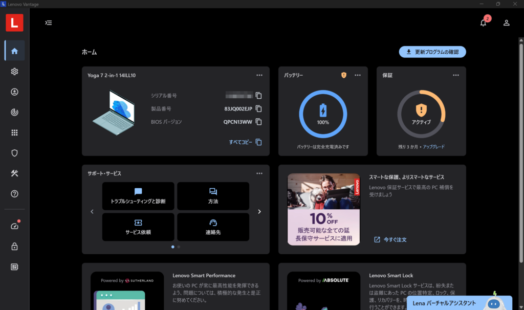 Yoga 7i 2-in-1 Gen 10付属ソフトチェック