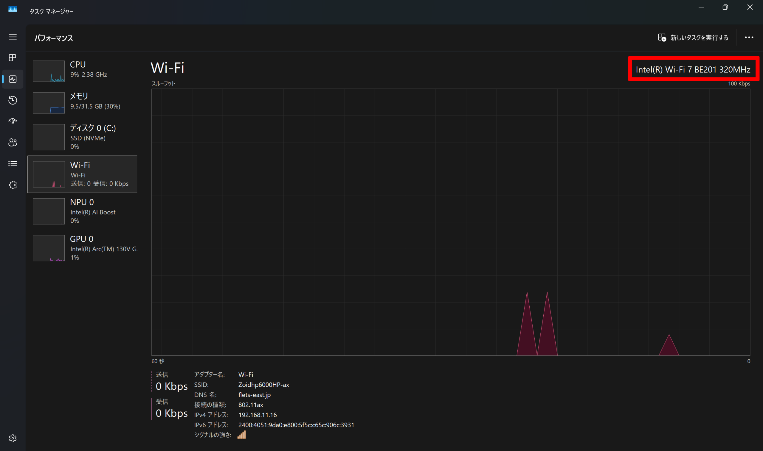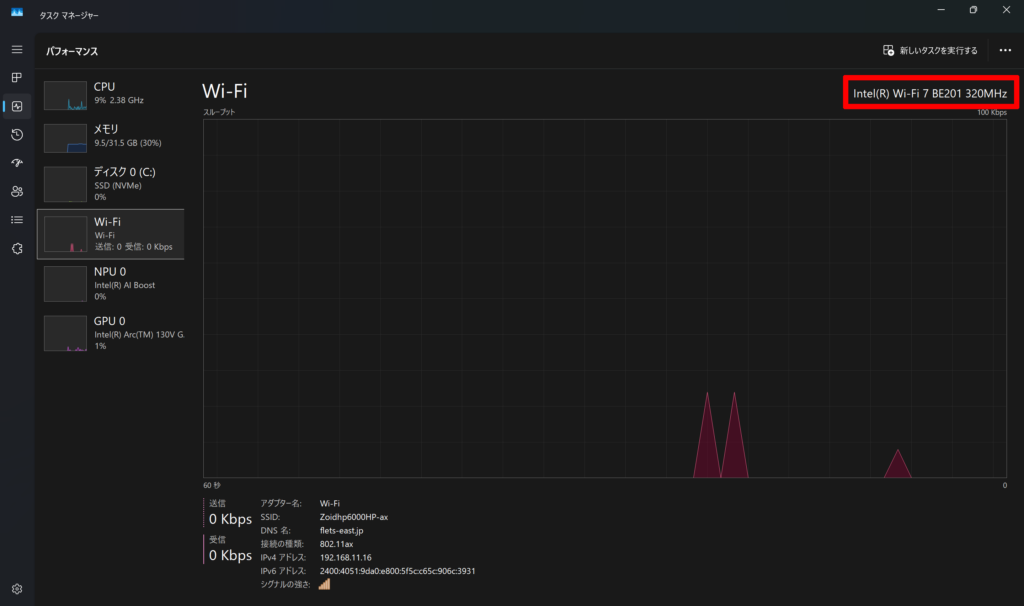 Wi-Fi 7対応 (IEEE802.11be/ax/ac/a/b/g/n) +Bluetooth v5.4