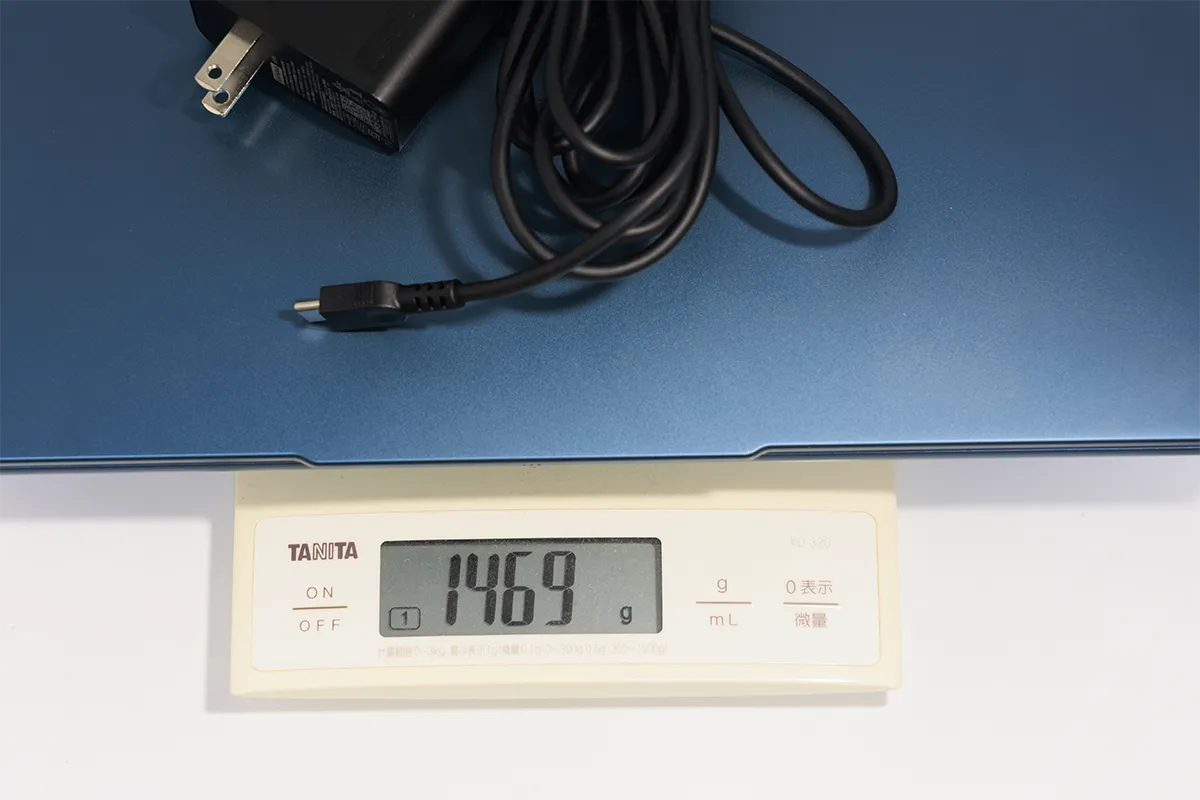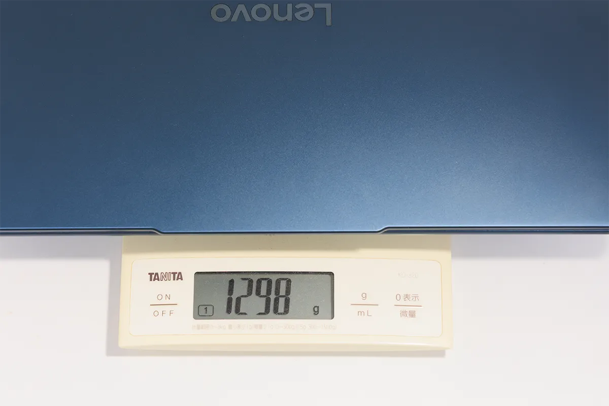 本体質量は1298g、AC電源は171gで合計は1469gでした。